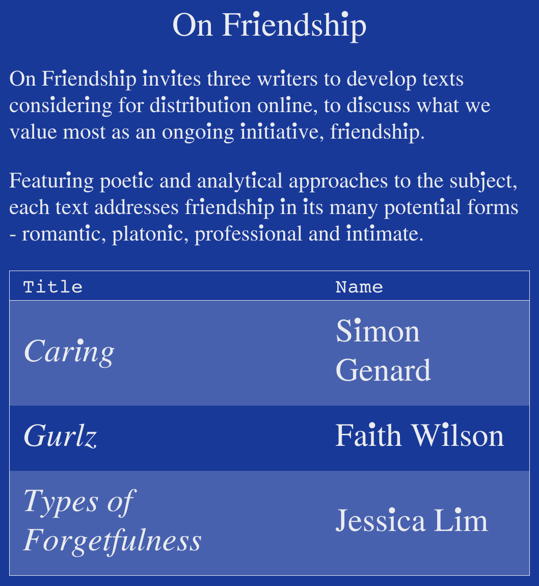 On Friendship. Online Writers Project. Friends Are Artists. Berlin, Germany. August 2018.